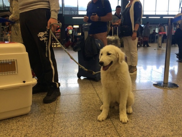 Il cucciolo di Pastore Maremmano Abruzzese all'età di 4 mesi è troppo grande per poter viaggiare in cabina con voi, peserà intorno ai 20 kg e deve necessariamente viaggiare nella stiva pressurizzata, un ambiente riservato ad hoc per cani e gatti. Ricordatevi di prenotare un posto per il cucciolo al momento di prenotare il vostro biglietto in quanto nella stiva sono disponibili posti limitati e non in tutti i voli.
